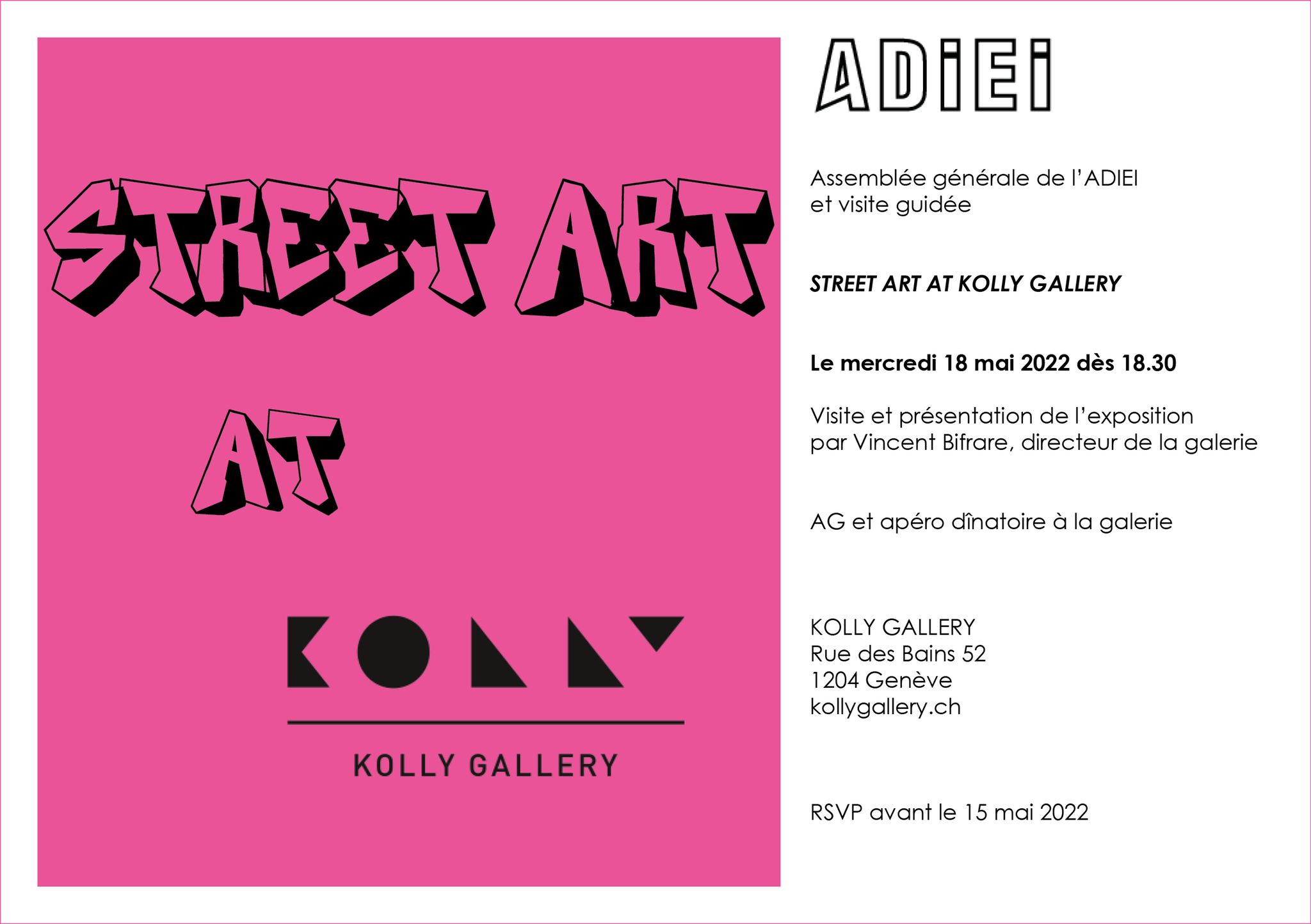 L'assemblée générale se tiendra cette année à la KOLLY GALLERY le